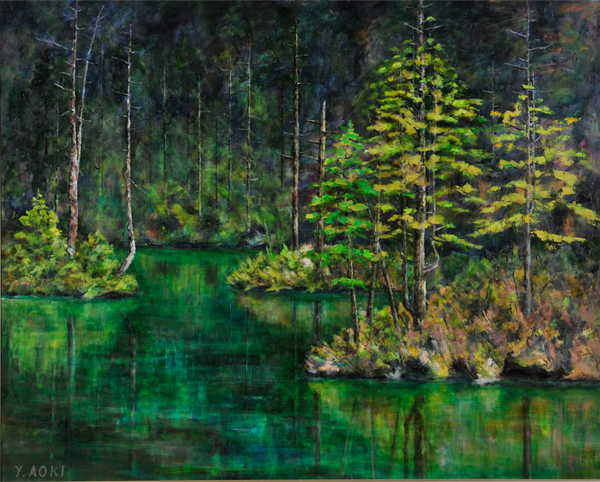 明神池早春 F100 (連盟展2019・洋画部)