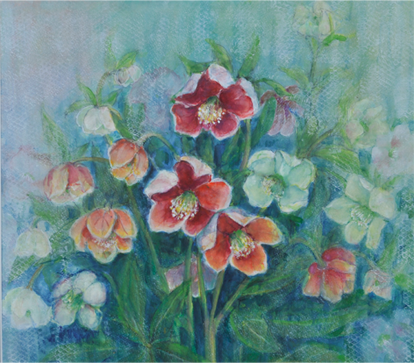 森に咲くクリスマスローズ F10 (2019連盟展・洋画部)